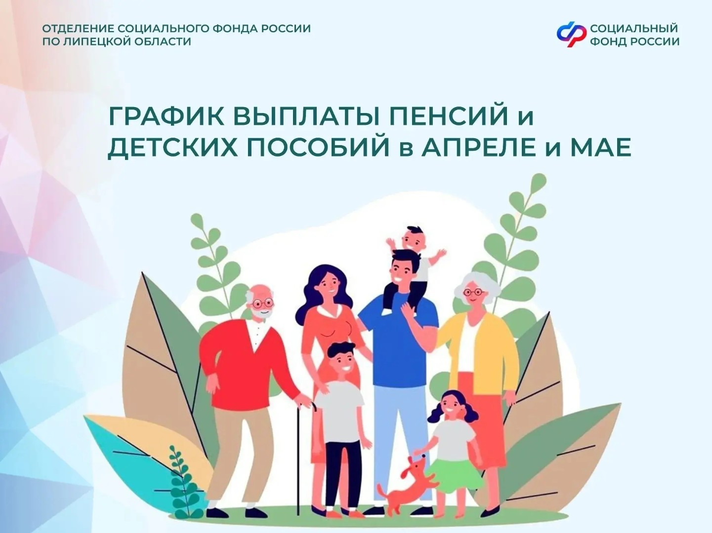 29 апреля Отделение Социального фонда по Липецкой области произведет следующие выплаты семьям с детьми за апрель: