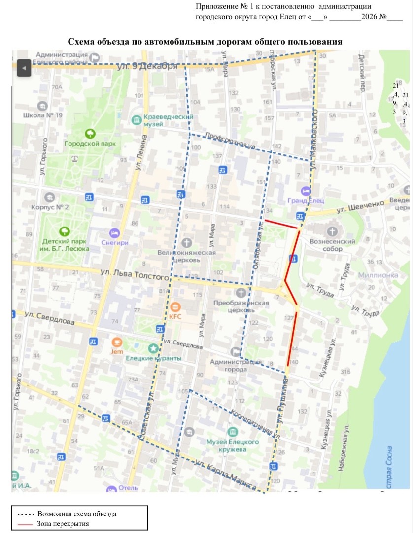 - Организован объезд по городским дорогам (схема — в приложении №1 к постановлению).
