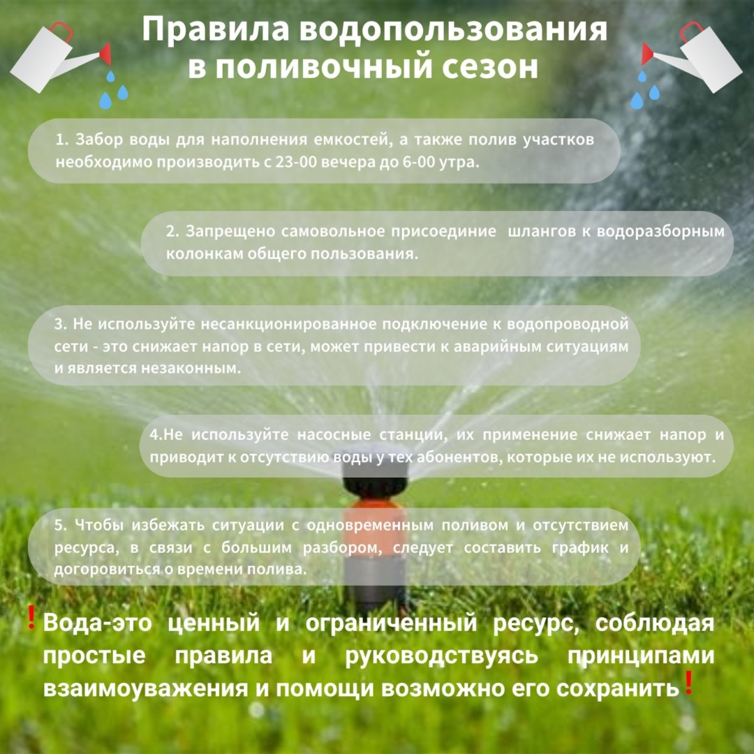 Для снижения дефицита ресурса необходимо придерживаться правил водопользования в летний сезон